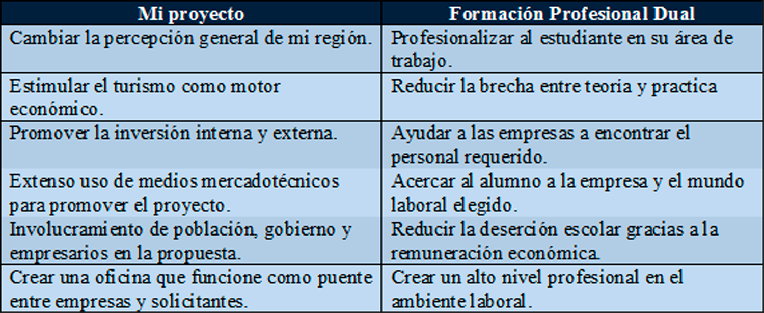 CUADRO COMPARATIVO ENTRE MI PROYECTO Y LA FORMACIÓN PROFESIONAL DUAL